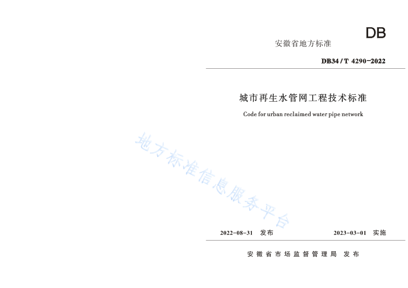1.0.1为规范城市再生水管道工程的设计、安装,运行与维护,满足用户对水量、水压、水质的要求,保障再生水管网设施安全稳定、高效运行,制定本标准。 1.0.2本标准适 用于安徽省区域内新建、改建、扩建城市再生水管道工程的设计、安装运行与维护 1.0.3城市再生水管道工程设计、安装、运行与维护,除应符合本标准外,尚应符合国家现行有关标准的规定。