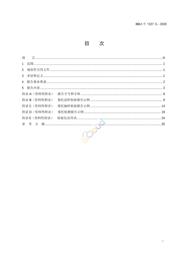 DB61/T 1327的本部分规定了检验检测报告(以下简称报告)编制的术语和定义、报告基本要求和报告内容要求。