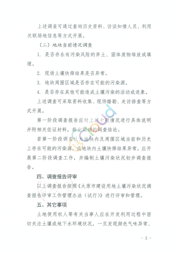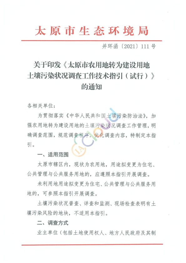 各相关单位: 为贯彻落实《中华人民共和国土壤污染防治法》,加强农用地转为建设用地的土壤污染状况调查工作管理,明确调查范围,规范调查程序,优化调查内容,特制定本指引。