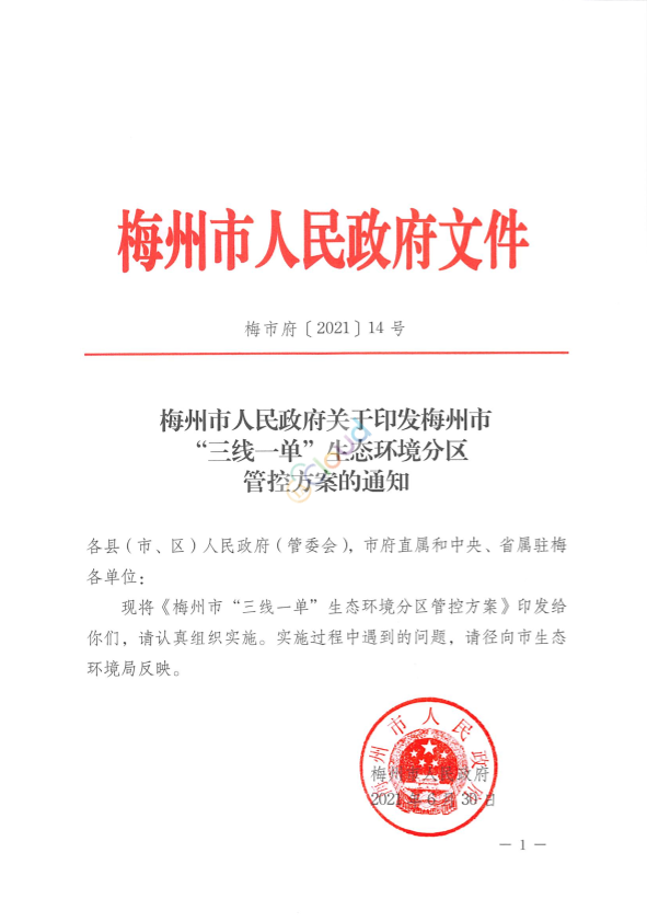 梅市府〔2021〕14号 梅州市人民政府关于印发梅州市三线一单生态环境分区管控方案的通知.pdf