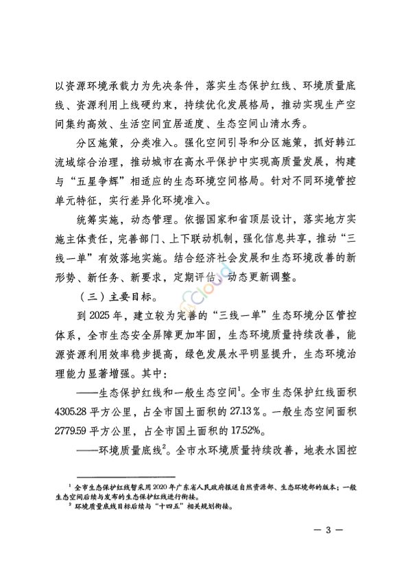 • 实施生态保护红线、环境质量底线、资源利用上线和生态环境准入清单