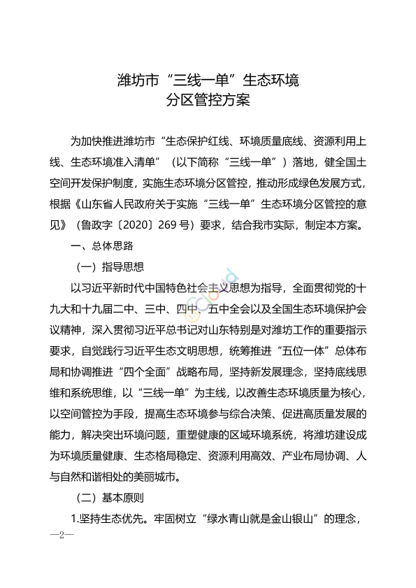各县市区政府、市属各开发区管委会,市直有关部门、单位: 《潍坊市“三线一单”生态环境分区管控方案》已经市委、市政府同意,现印发给你们,请结合实际认真组织实施。 潍坊市人民政府 2021年6月8日