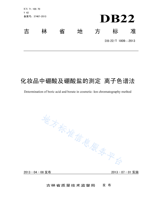 本标准规定了化妆品中硼酸及硼酸盐测定的离子色谱方法。 本标准适用于化妆品中硼酸及硼酸盐的测定(以硼酸根计)。