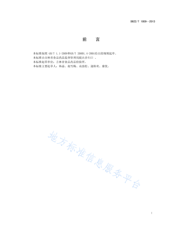 本标准按照 GB/T 1.1-2009和GB/T 20001.4-2001给出的规则起草。 本标准由吉林省食品药品监督管理局提出并归口 。 本标准起草单位:吉林省食品药品检验所。 本标准主要起草人:韩晶、赵雪梅、南劲松、逄焕欢、康优。