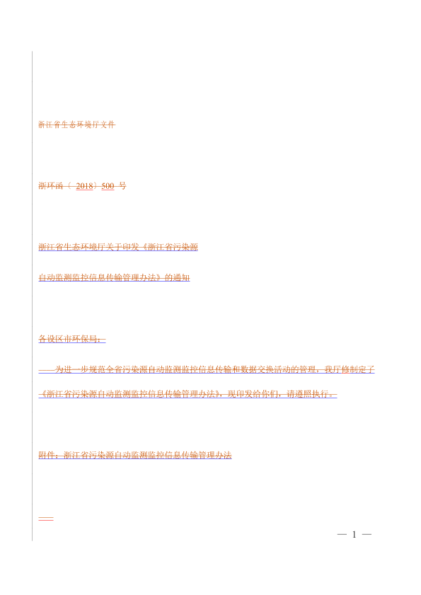 各设区市环保局: 为进一步规范全省污染源自动监测监控信息传输和数据交换活动的管理,我厅修定了《浙江省污染源自动监测监控信息传输管理办法》,现印发给你们,请遵照执行。 附件:浙江省污染源自动监测监控信息传输管理办法 浙江省生态环境厅 2018年11月27日