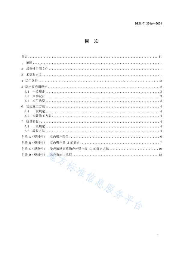 本文件规定了交通运输噪声污染缓解工程中隔声窗应用设计、施工方法和质量验收。 本文件适用于缓解受交通运输噪声影响的既有噪声敏感建筑物噪声防护工程使用的隔声窗措施。 本文件不适用受机场周围区域受航空器噪声影响的噪声敏感建筑物防护措施。