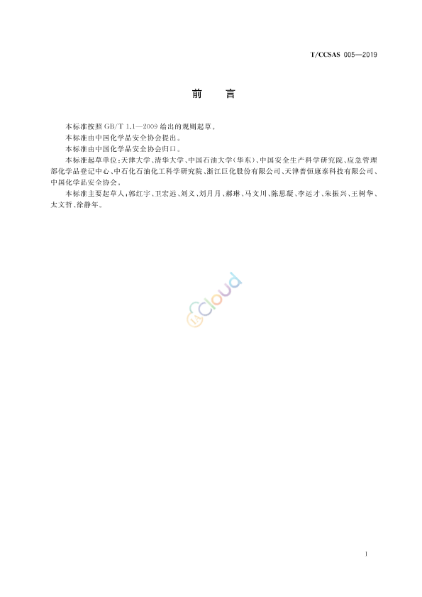 本标准按照GB/T1.1—2009给出的规则起草。 本标准由中国化学品安全协会提出。 本标准由中国化学品安全协会归口。 本标准起草单位:天津大学、清华大学、中国石油大学(华东)、中国安全生产科学研究院、应急管理部化学品登记中心、中石化石油化工科学研究院、浙江巨化股份有限公司、天津普恒康泰科技有限公司、中国化学品安全协会。 本标准主要起草人:郭红宇、卫宏远、刘义、刘月月、郝琳、马文川、陈思凝、李运才、朱振兴、王树华、太文哲、徐静年。