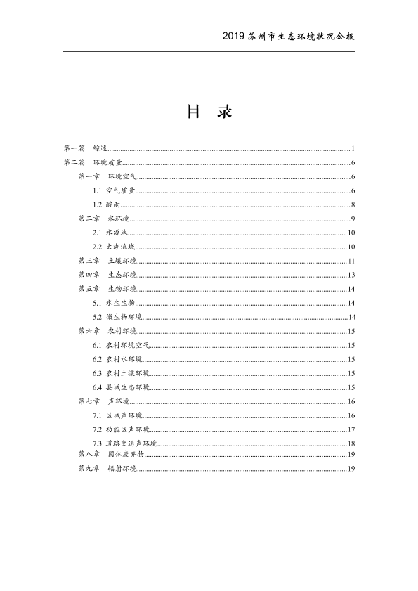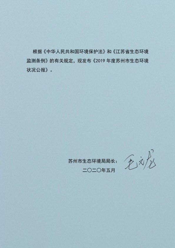 根据《中华人民共和国环境保护法》和《江苏省生态环境监测条例》的有关规定,现发布《2019 年度苏州市生态环境状况公报》