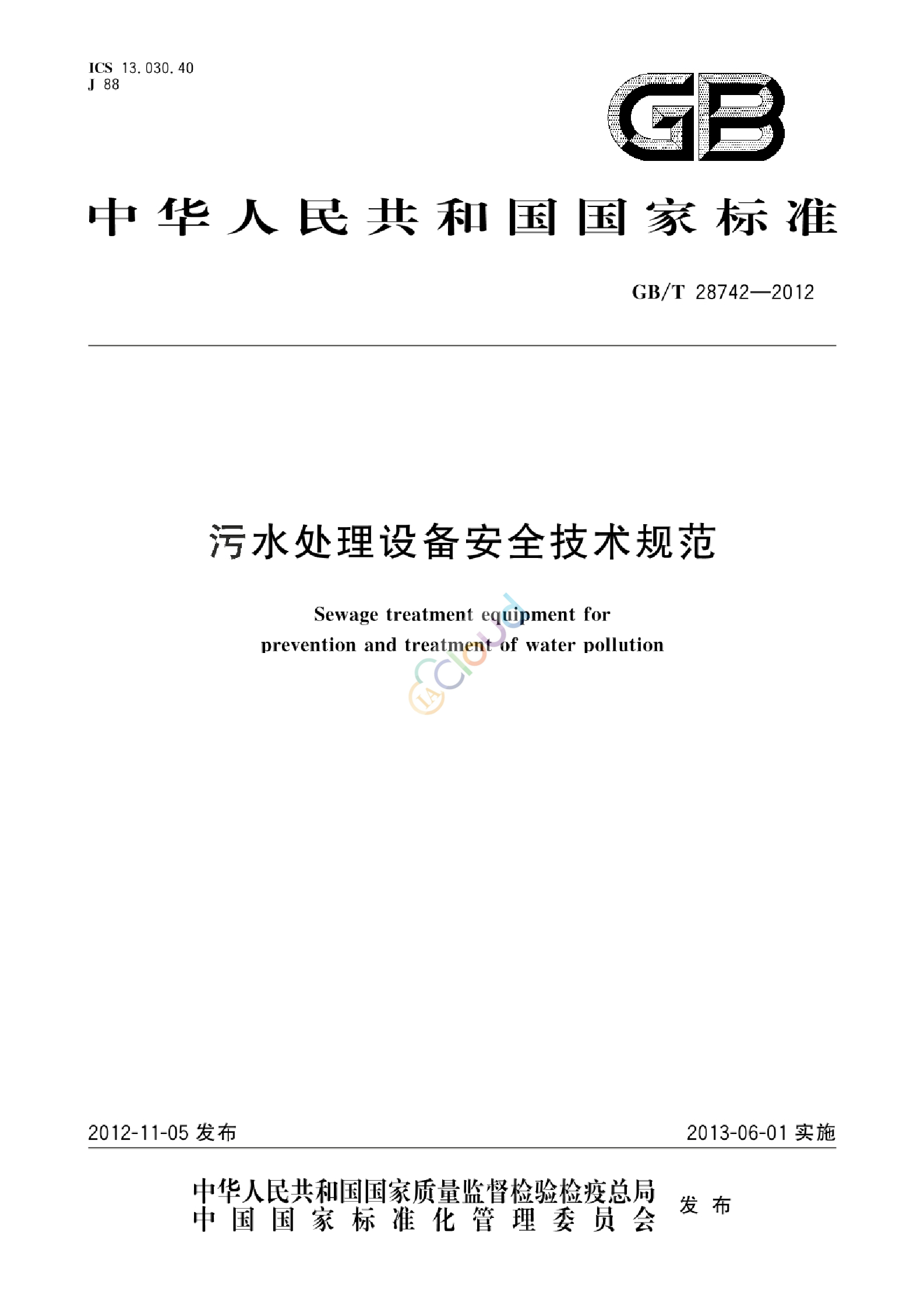 本标准规定了污水处理设备(以下简称设备)设计、制造、使用过程中的安全技术要求。 本标准适用于各种污水处理设备。