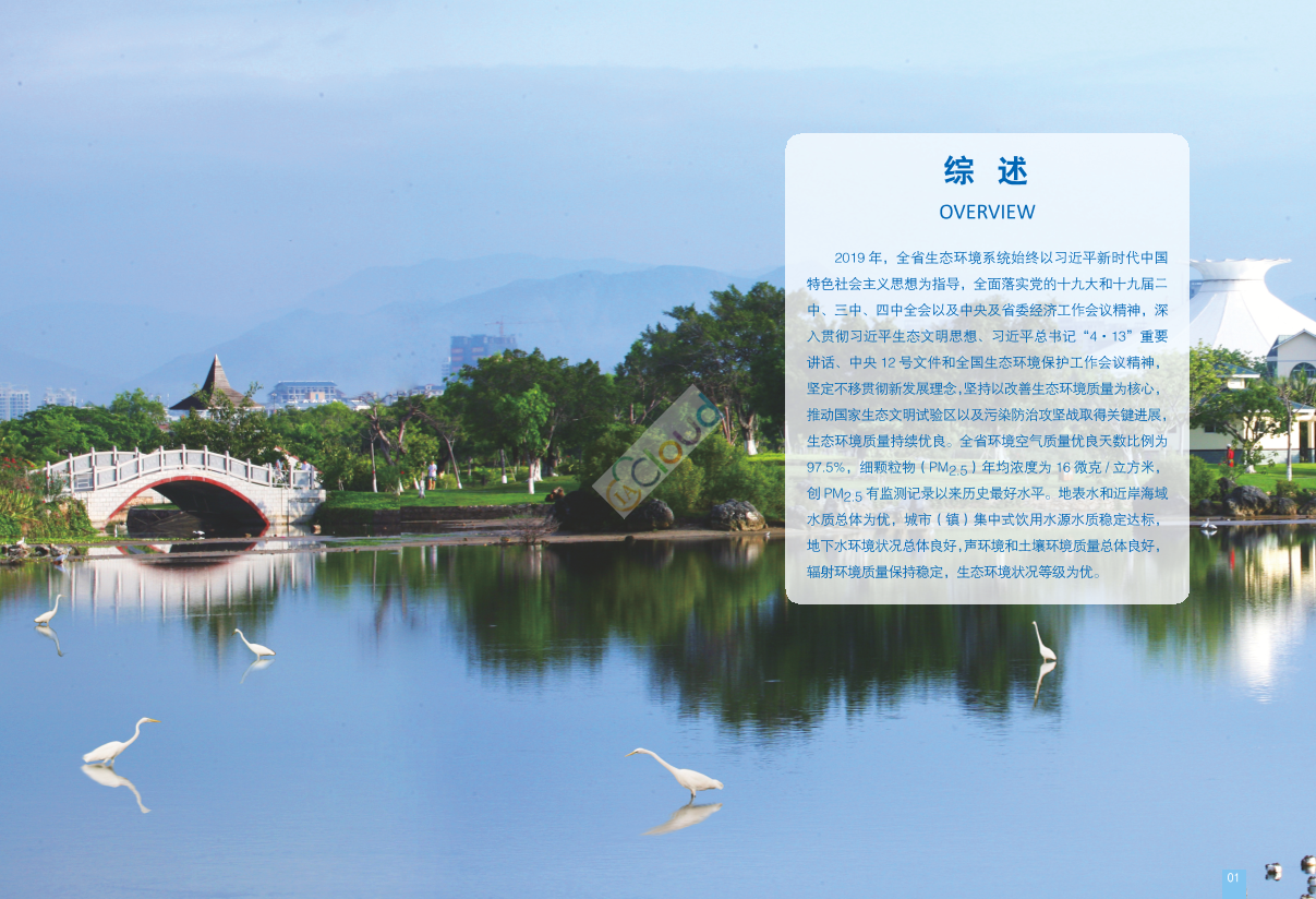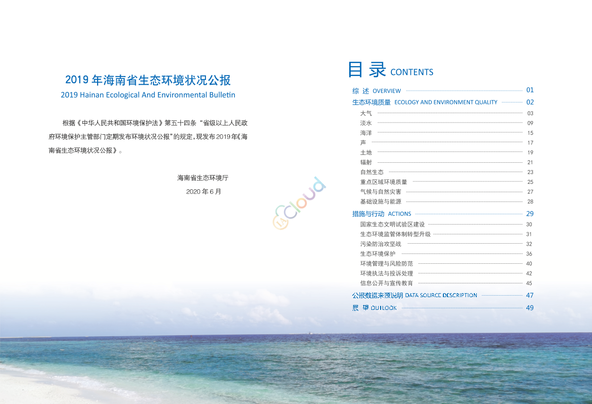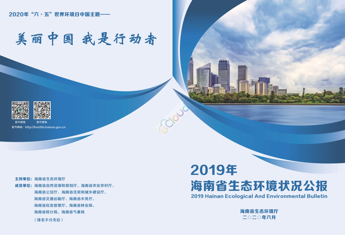 根据《中华人民共和国环境保护法》第五十四条“省级以上人民政府环境保护主管部门]定期发布环境状况公报”的规定,现发布2019年《海南省生态环境状况公报》