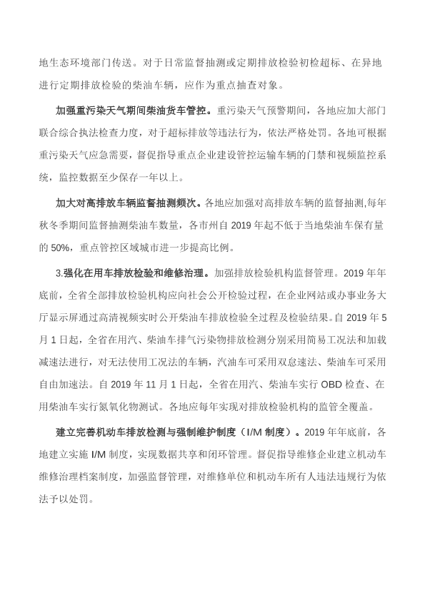 • 柴油车监督抽测合格率≥90%,黑烟现象基本消除。