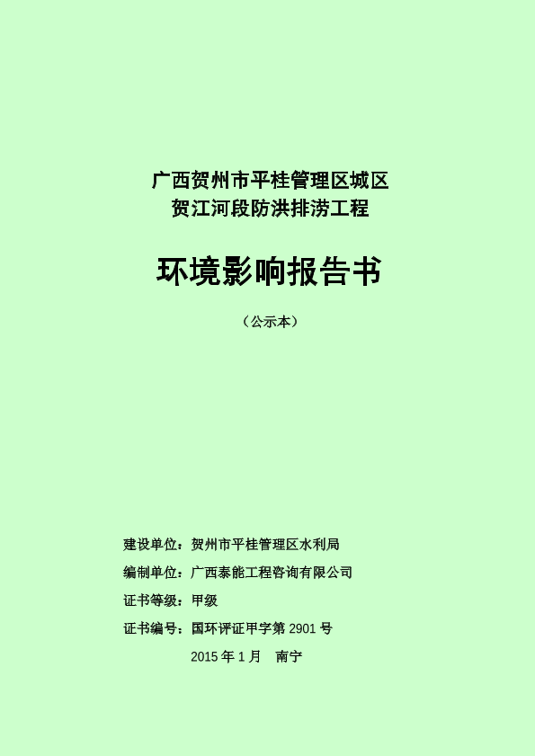 广西贺州市平桂管理区城区贺江河段防洪排涝工程环境影响报告书审批_848906.pdf