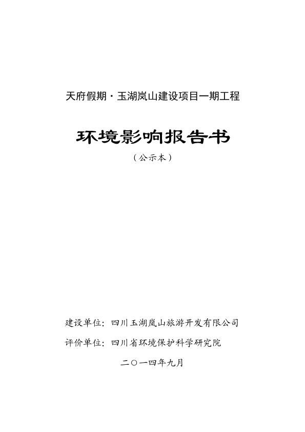 四川玉湖岚山旅游开发有限公司天府假期·玉湖岚山建设项目一期工程_35647.pdf