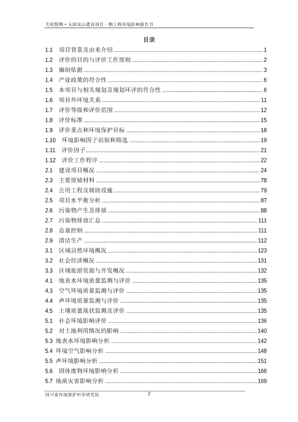 2、四川玉湖岚山旅游开发有限公司天府假期·玉湖岚山建设项目一期工程
