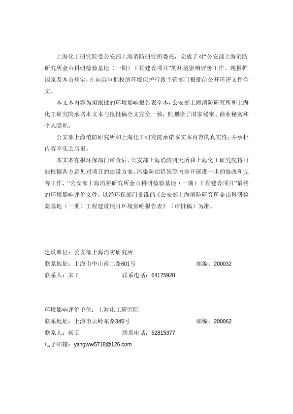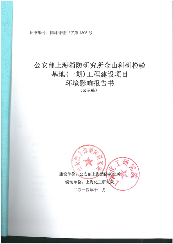 公安部上海消防研究所金山科研检验基地(一期)工程建设项目 公开