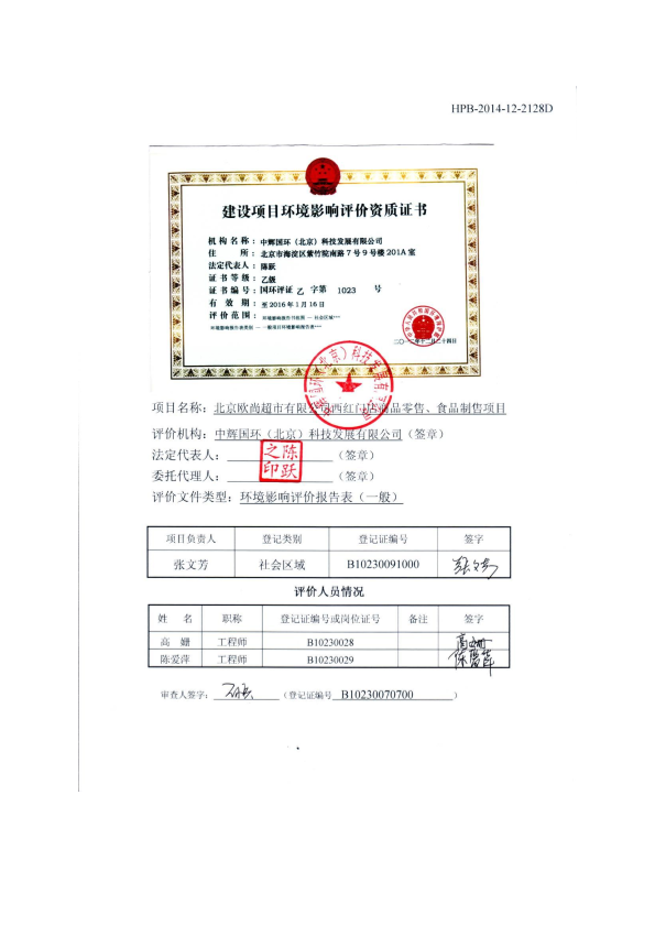 北京欧尚超市有限公司西红门店商品零售、食品制售项目5339.pdf
