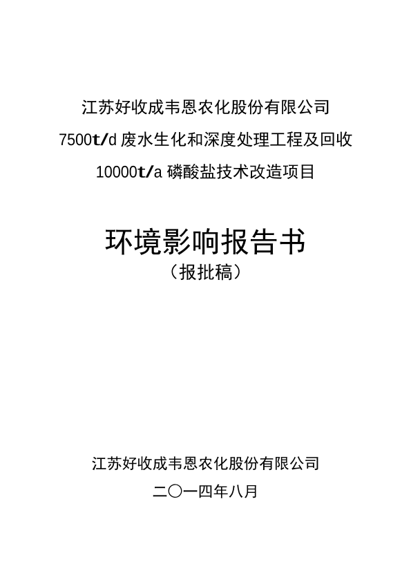 江苏好收成韦恩农化股份有限公司7500t废水生化和深度处理工程及回收10000t磷酸盐技术改造项目环境影响报告书(报批稿)_893838.pdf