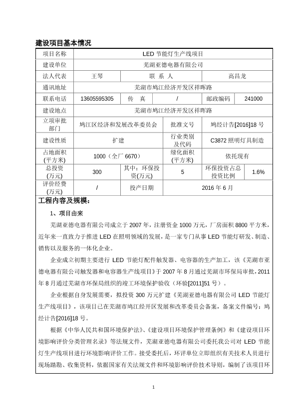 芜湖亚德电器有限公司led节能灯生产线项目环境影响报告表公示209568831.pdf