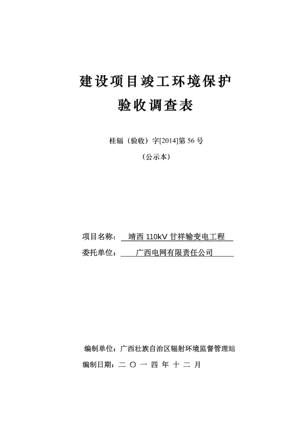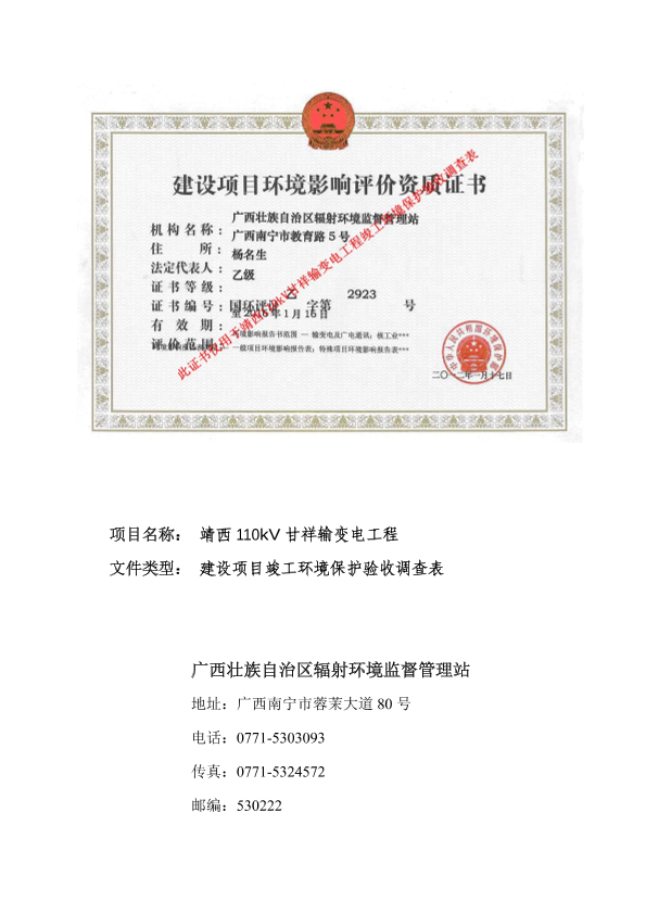 广西电网有限责任公司靖西110kv甘祥输变电工程环境保护设施竣工验收审批_161964.pdf