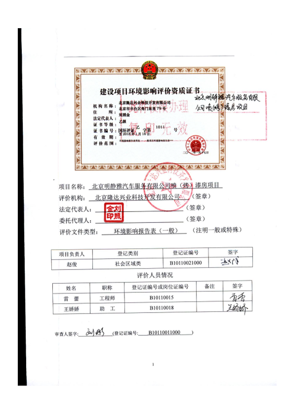 1、北京明静雅汽车服务有限公司新增钣金喷漆项目7625
