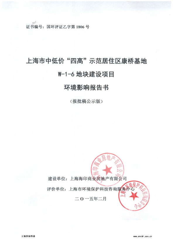 上海市中低价“四高”示范居住区康桥基地W-1-6地块建设项目环境影响评价报批前公示4700