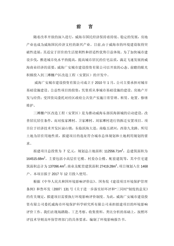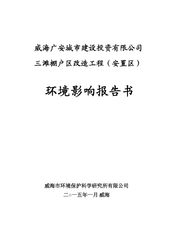 威海市环境保护局经区分局关于威海广安城市建设投资有限公司三滩棚户区改造工程(安置区)环境影响评价报告书受理情况的公示_1226946.pdf