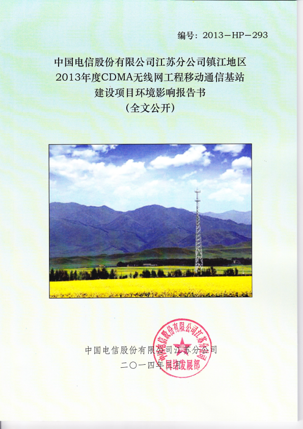 2、中国电信股份有限公司江苏分公司2013年度cdma无线网工程移动通信基站建设项目环境