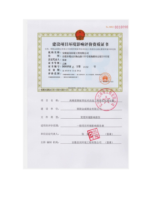 高精度铜板带技术改造工程废乳化液处置变更a39768a7738