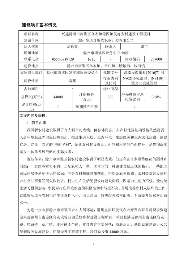 滁州皇庆圩现代农业开发有限公司《兴建滁州市南谯区乌衣镇等四镇美好乡村建设工程项目》a30031a2652.pdf