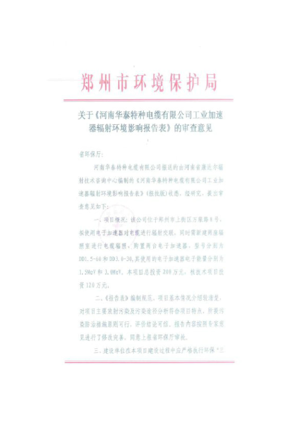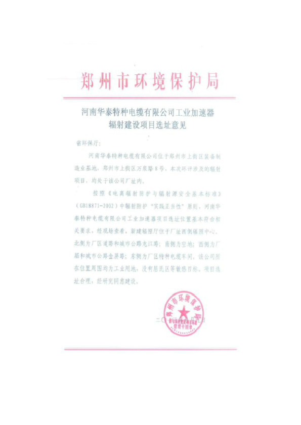 河南华泰特种电缆有限公司辐射环境影响报告表市局审查意见及选址意见(1)7430
