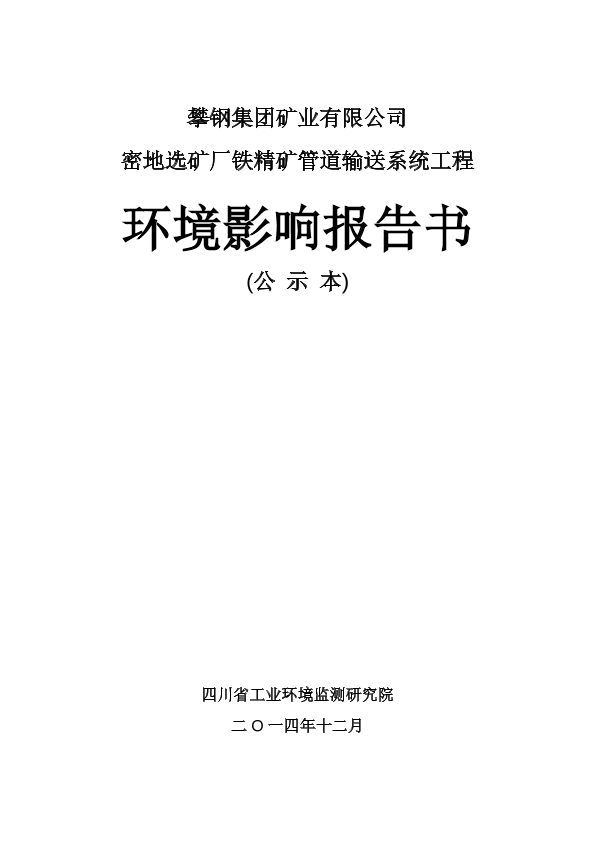 攀钢集团矿业有限公司密地选矿厂铁精矿管道输送系统工程_37665.pdf