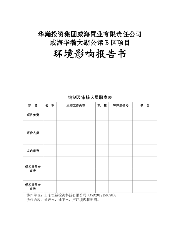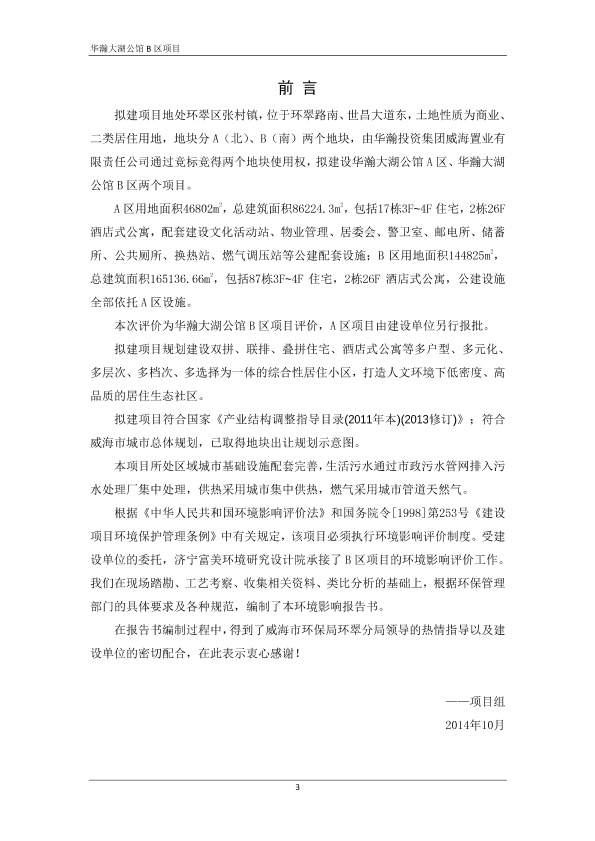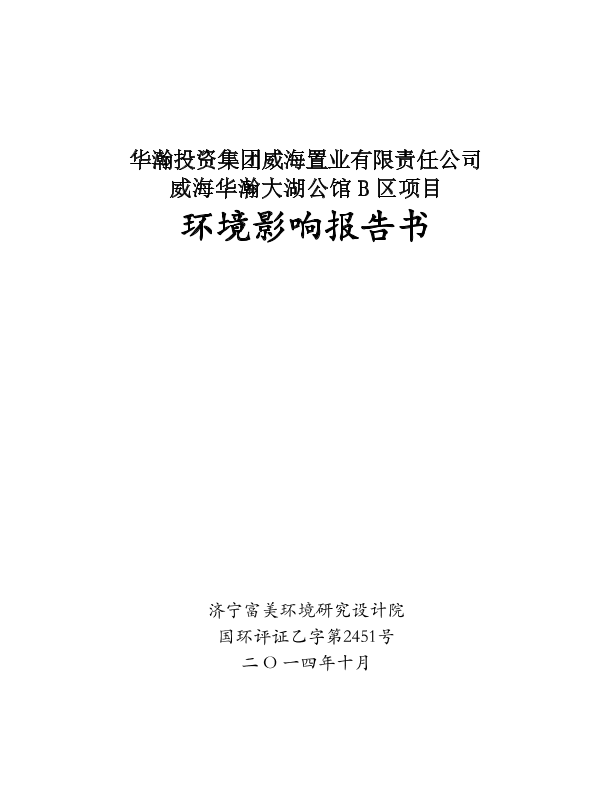 威海市环保局环翠分局关于华瀚投资集团威海置业有限责任公司大湖公馆b区建设项目环境影响评价文件受理情况的公示_1225062.pdf