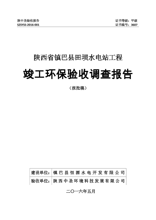 田坝水电站验收报批稿镇巴县田坝水电站工程701329746.pdf