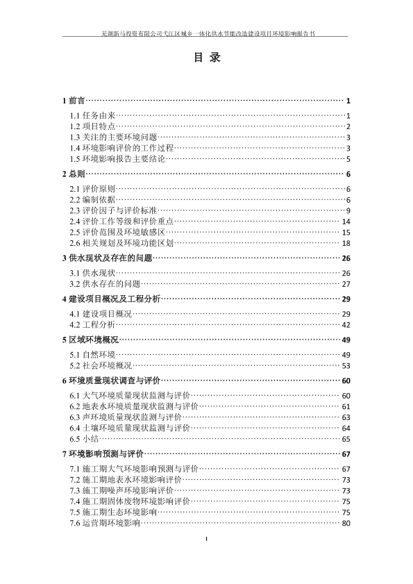芜湖新马投资有限公司弋江区城乡一体化供水节能改造建设项目环境影响报告书公示266963816.pdf