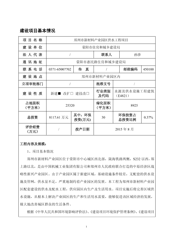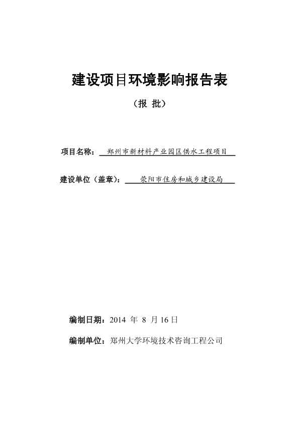 郑州市新材料产业园区(荥阳市)-郑州市新材料产业园区供水工程项目报告表2650 公开