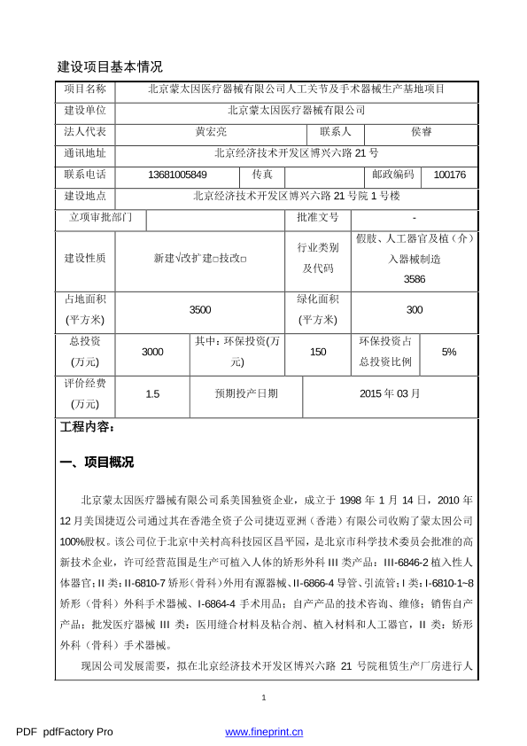 1、北京蒙太因医疗器械有限公司医疗器械生产项目9233