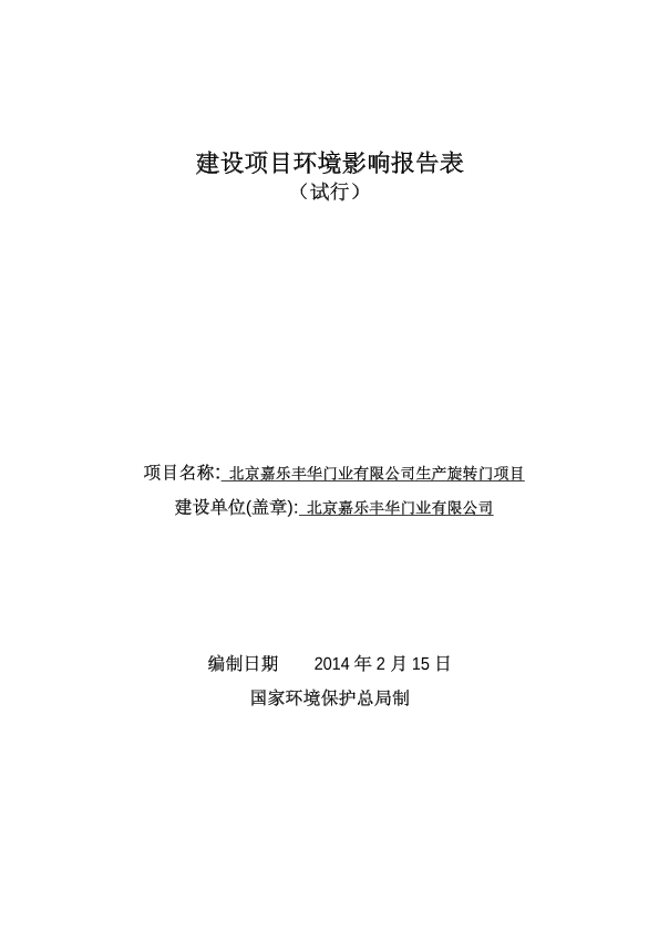 北京嘉乐丰华门业有限公司生产旋转门项目7042.pdf