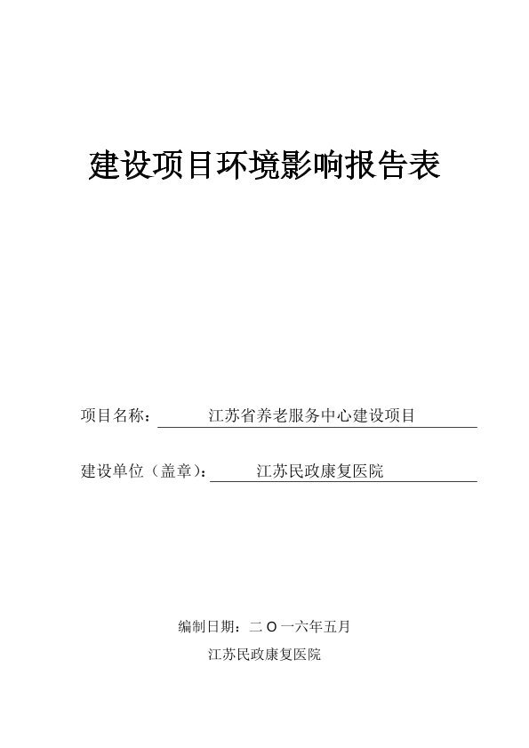 4、江苏民政康复医院江苏省养老服务中心建设项目环境影响报告表全本公示2318
