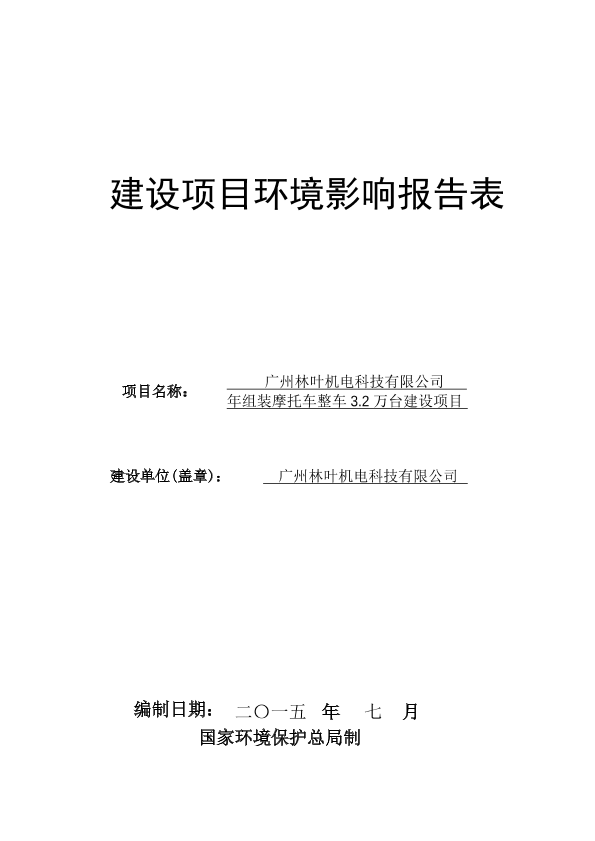 广州林叶机电科技有限公司年组装摩托车整车3.2万台建设项目7964
