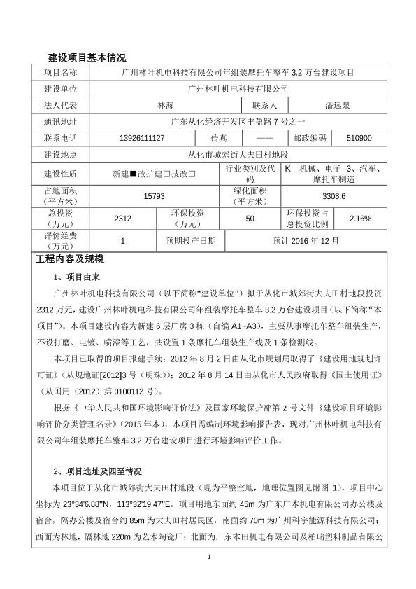 广州林叶机电科技有限公司年组装摩托车整车3.2万台建设项目7964.pdf