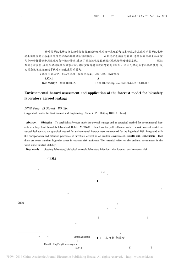 感染性气溶胶泄漏环境风险预测模型系统与应用_丁峰,李时蓓等