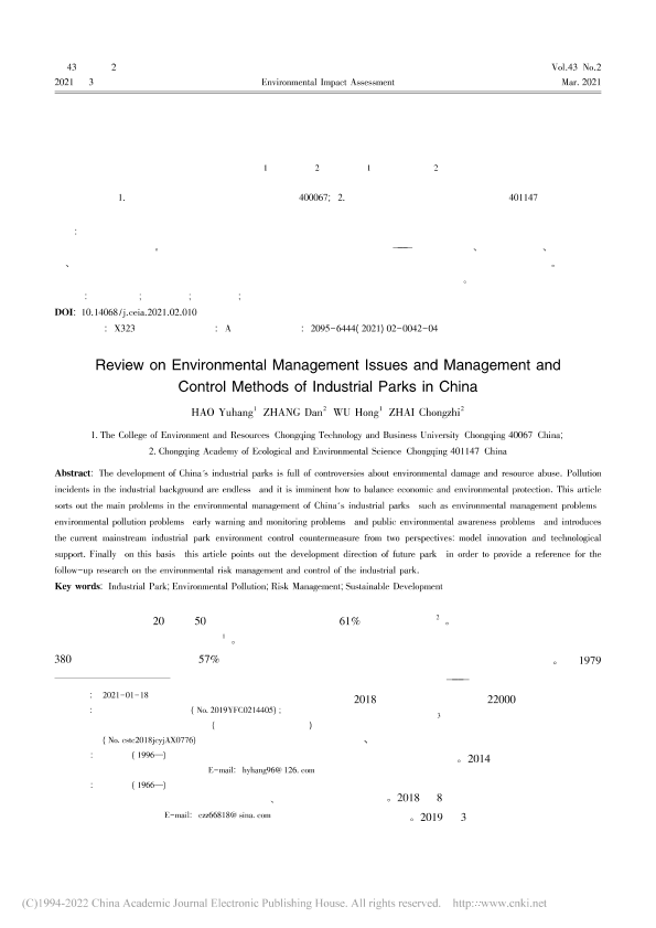 我国工业园区环境管理问题及管控方法的研究进展_郝宇杭 公开
