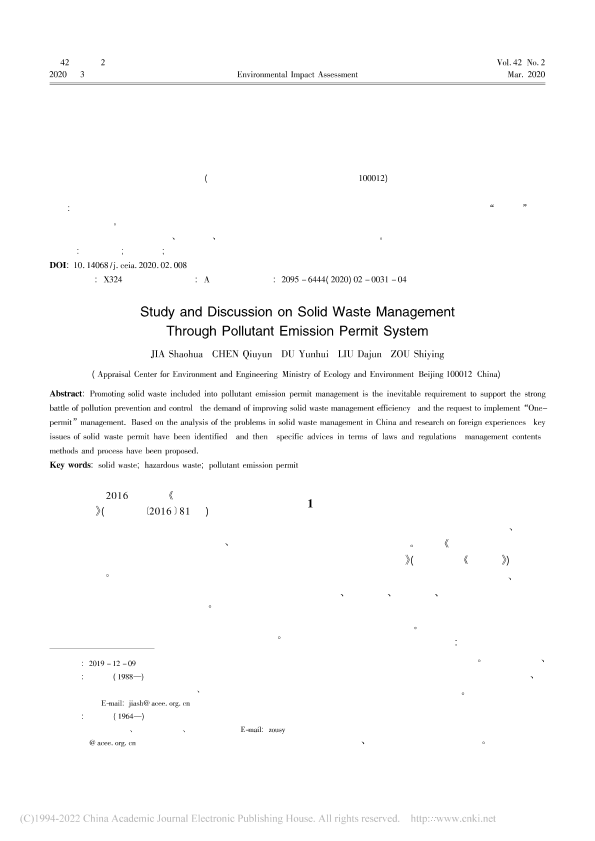 固体废物纳入排污许可管理的思考与建议_贾少华 公开