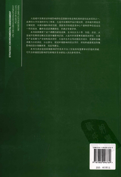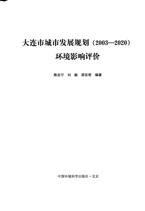 《大连市城市发展规划(2003-2020)环境影响评价》陈吉宁主编. 北京:环境科学出版社,200801 公开