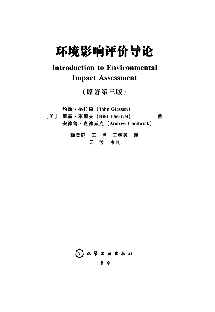 《环境影响评价导论(英原著第三版)》格拉森. 北京:化工出版社,200706 公开