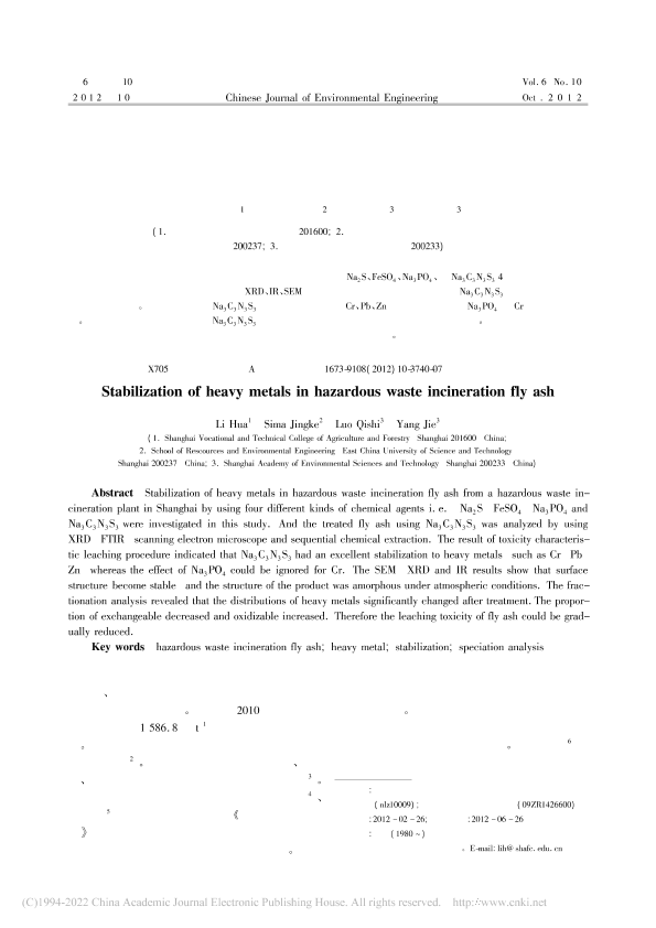危险废物焚烧飞灰中重金属的稳定化处理_李华