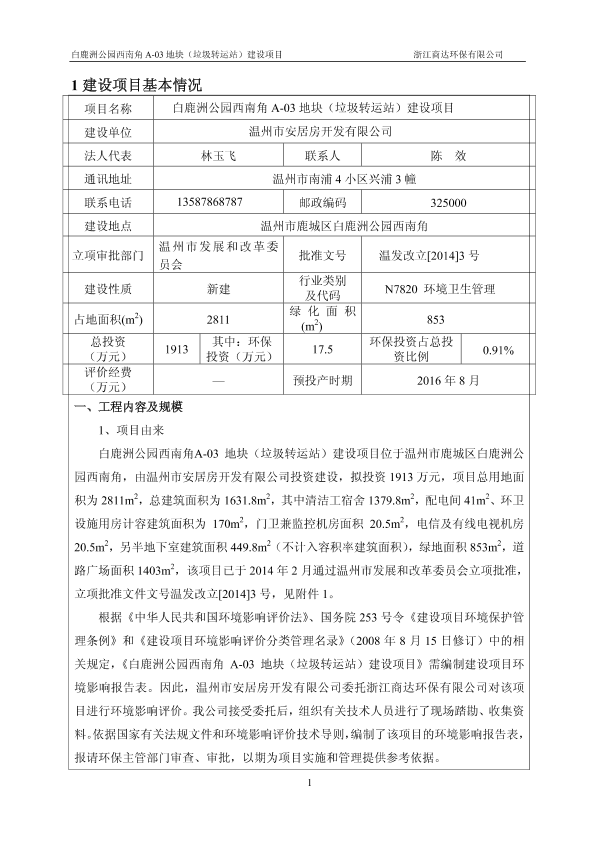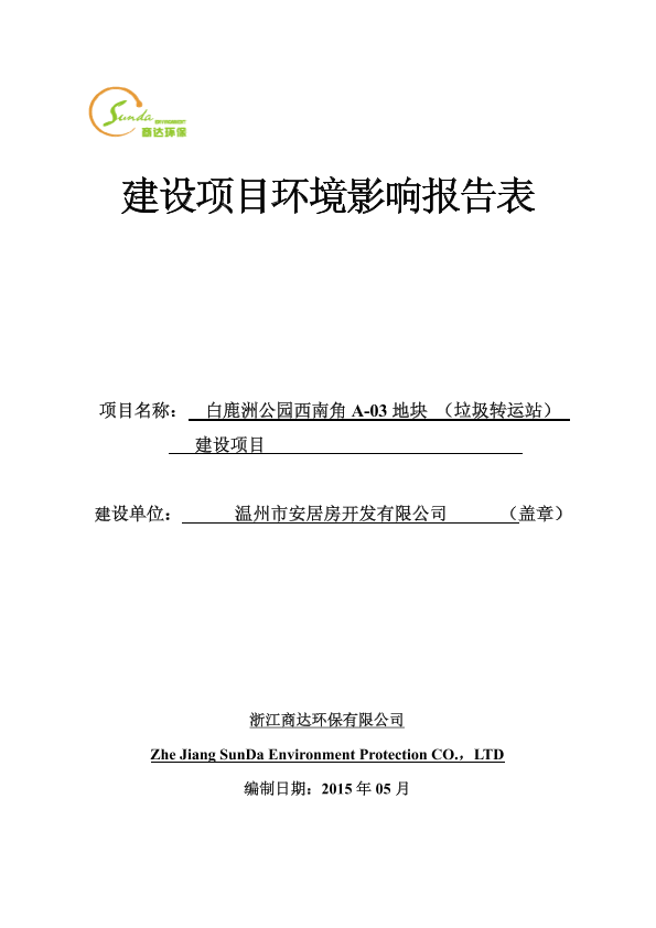 白鹿洲公园西南角a-03地块(垃圾转运站)建设项目