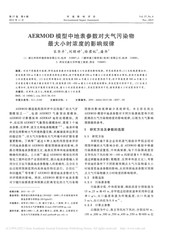 AERMOD模型中地表参数对大气污染物最大小时浓度的影响规律_宋华丰.pdf