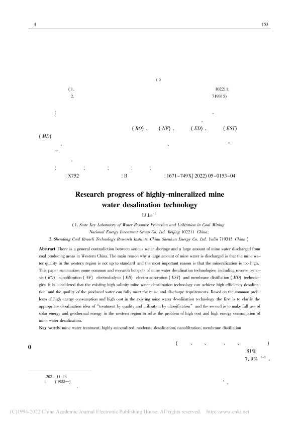 高矿化度矿井水脱盐技术研究进展_李杰 公开