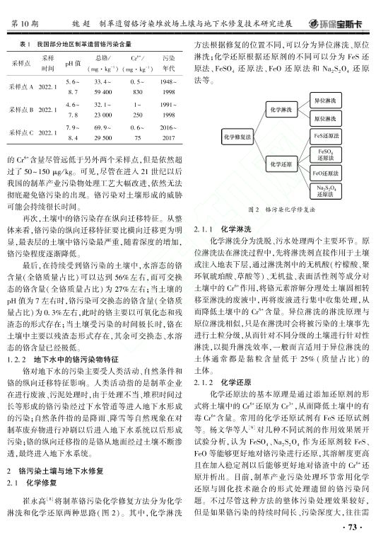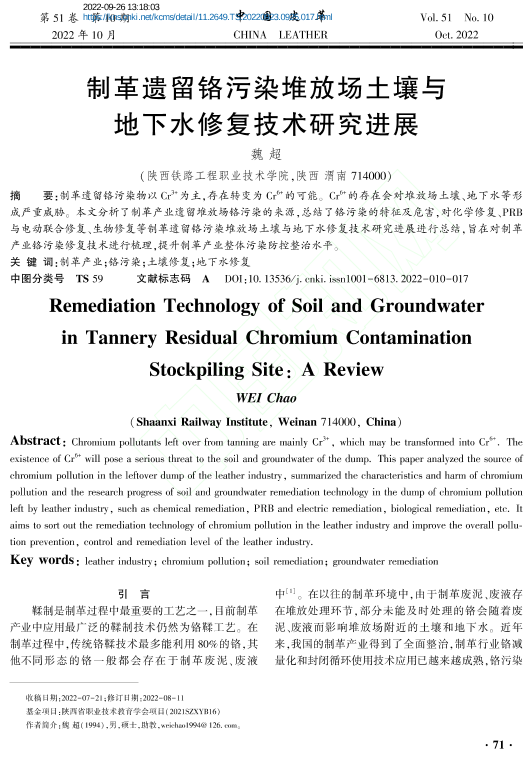 制革遗留铬污染堆放场土壤与地下水修复技术研究进展_魏超